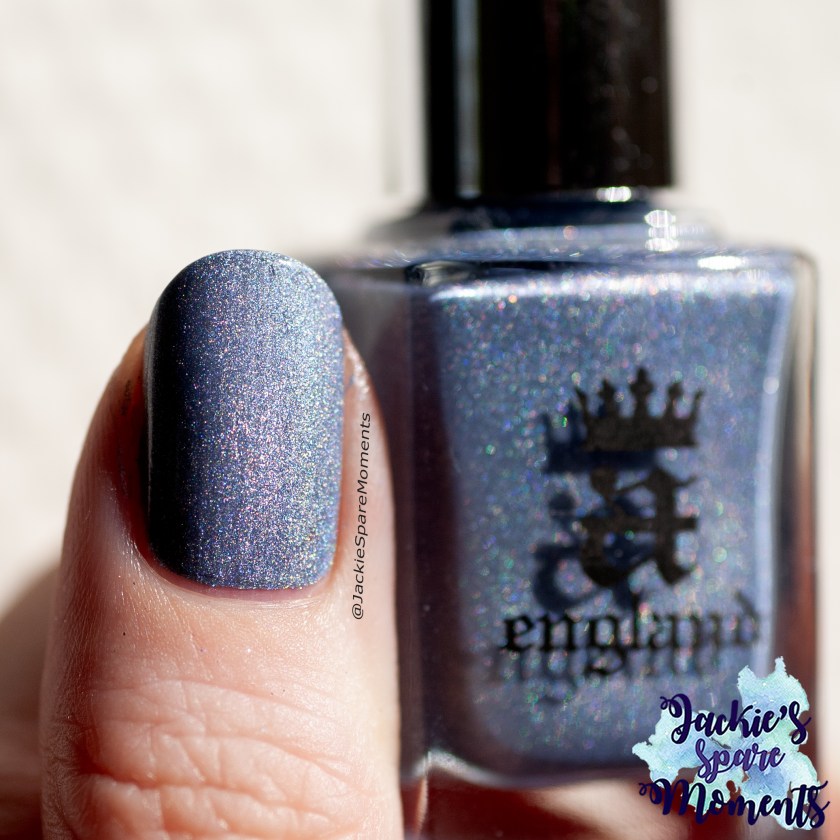 T is for The London Scene. I noticed I had not yet chosen a grey nail polish in my alphabet. So I chose A England The London Scene, a grey holographic nail polish. I wore this polish multiple times already.