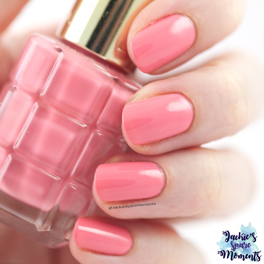 By now the garden is very much in bloom en the final polish picks of the month are all inspired by the various shades of pink that the flowers are. The first pick was this warm pink that is Essie Blushin’ & Crushin’. It was opaque in two coats.