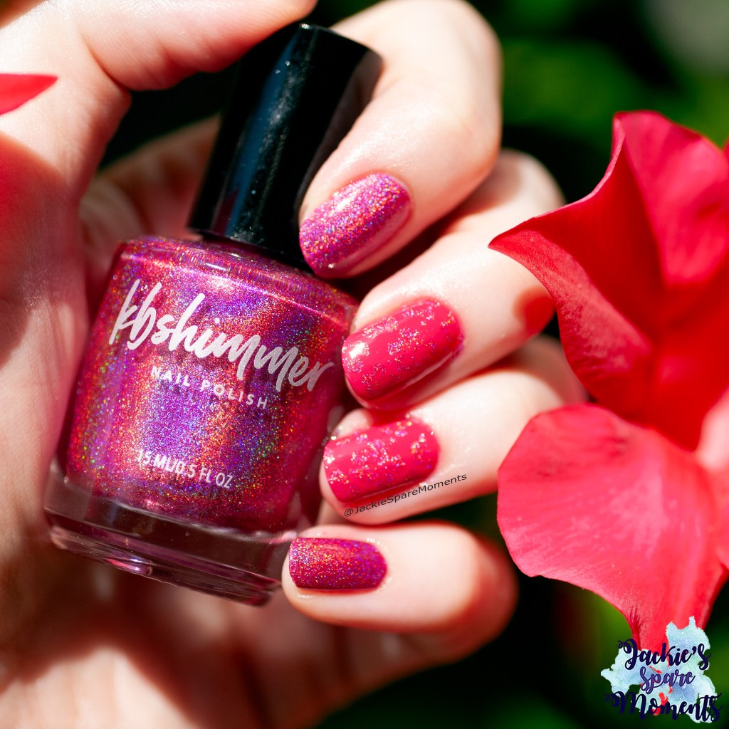 Then I chose Dam nail polish I’m in a Flurry. I’m wearing it in three coats. This nail polish is day 10 from de 2023 advent calendar. I loved this nail polish. It’s a red leaning magenta with blue shimmer.