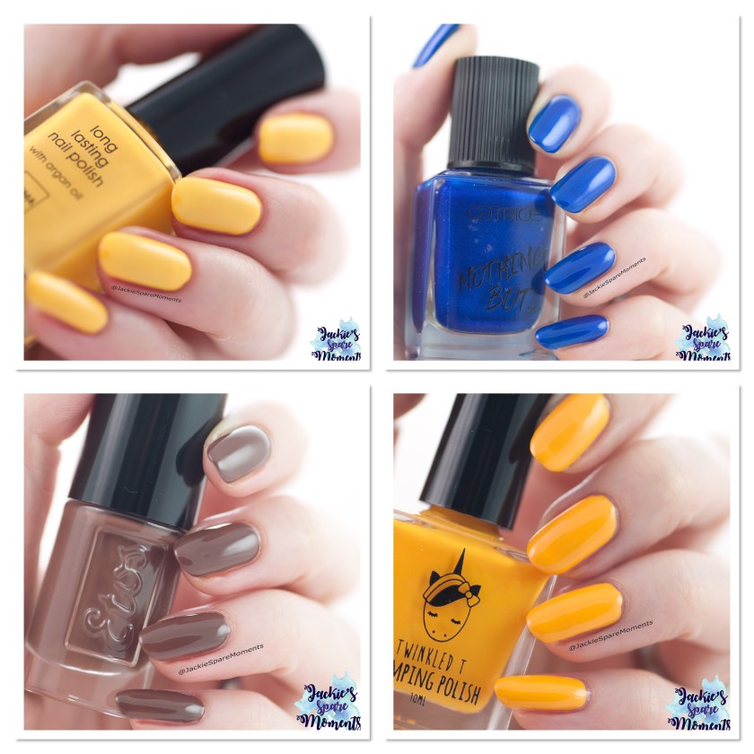 Deze maand startte met de verjaardag van Dochter. De maand eindigde uiteraard met Halloween. Het weer was aanvankelijk rustig herfstweer, maar de maand eindigde met stormachtig herfstweer en veel regen. Ik kwam regelmatig aan het lakken van mijn nagels toe. Ik draag elke manicure met base coat en top coat tenzij anders vermeld. This month started with the birthday of Daughter. The month ended with Halloween. The weather at the beginning of the month was calm fall weather, but the month ended with storm and lots of rain. I had time to paint my nails on a regular basis. I wore each manicure with base coat and top coat unless otherwise stated. Birthday manicure for Daughter Dochter is dit nu 16 jaar geworden! Ze draagt inmiddels zelf nagellak en heeft deze Winter soldier nail art gecreëerd. Dus voor haar verjaardag heeft ze het zelf bij mij aangebracht. Op mijn linkerhand draag ik een laagje essence mud about you, een laagje essence SteelGPT en een chevron stempel met mud about you. De ster afbeelding is van …